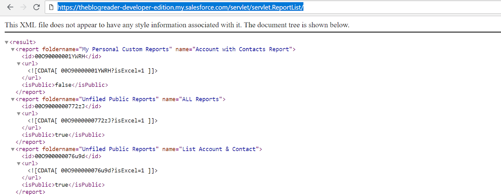 Also possible to Generate Salesforce Reports as a XML format using the below way: